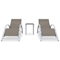 Cet ensemble de chaises longues, livré avec 2 chaises longues et 1 table, attirera tous les regards partout où il sera placé. Fabriqué à partir de matériaux de qualité, l'ensemble est conçu pour être utilisé à l'extérieur toute l'année. Les cadres en aluminium enduit de poudre apportent une super stabilité et assurent au salon une longue durée de vie de service et une excellente durabilité. Et le textilène résistant aux intempéries rend les chaises de plage faciles à nettoyer. Grâce à son design ergonomique qui épouse les contours naturels de votre corps, vous vous sentirez très à l'aise allongé sur la chaise en aluminium. Le dessus de table en verre trempé vous offre un endroit pour mettre votre tasse de thé ou d'autres articles dont vous avez besoin à portée de main. Et comme le cadre en aluminium est léger, l'ensemble de chaises longues est facile à déplacer. L'ensemble de salon de jardin en aluminium est une combinaison parfaite de style et de fonctionnalité. Remarque : afin de prolonger la durée de vie des meubles d'extérieur, nous vous recommandons de les protéger avec une housse imperméable.