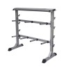 Ce porte-haltères est conçu pour garder les poids libres et les haltères organisés et hors sol. Il convient à la plupart des tailles et des styles d'haltères, y compris le néoprène et la fonte. Le cadre stable et les deux étagères vous aideront à maintenir un environnement de gym à domicile plus propre en fournissant un endroit pour garder vos haltères lorsqu'ils ne sont pas utilisés. Il est fait d'acier robuste pour des années d'utilisation. La base antidérapante en caoutchouc aide à protéger les sols des dommages et assure la stabilité et la sécurité optimale. Ce support avec sa construction robuste a une capacité max de charge de 300 kg. Il convient aussi à presque toutes les longueurs de haltère . Il mesure 49 x 100 x 95 cm une fois entièrement assemblé. Lisez le manuel d'utilisation avec attention avant d'utiliser le produit. Le produit est un appareil domestique de fitness. Si vous êtes sous traitement médical pour des problèmes cardiaques, de la tension artérielle, de l'excès de cholestérol, etc., il est très important de consulter un médecin avant de vous entraîner. Faites toujours attention à votre état de santé avant de vous entraîner. Des méthodes d'entraînement non adaptées peuvent causer des problèmes de santé. Cessez l'entraînement si vous ressentez des malaises tels que des maux de tête, une oppression thoracique, un rythme cardiaque irrégulier, un essoufflement, des vertiges, des nausées, etc.