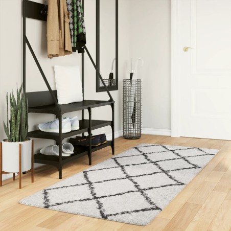 Tapis shaggy à poils longs moderne crème et noir 80x200 cm