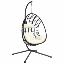 Asseyez-vous et profitez d'un moment de détente dans votre espace de vie avec cette fascinante chaise suspendue en forme d'œuf. Matériau durable : le rotin naturel est connu pour sa légèreté, sa durabilité, sa flexibilité et son charme rustique, ce qui en fait un choix idéal pour la fabrication de meubles. De plus, il ajoute une atmosphère naturelle, chaleureuse et accueillante à votre espace de vie.Robuste et stable : le cadre de la chaise en forme d'œuf pivotante est en acier. Le cadre en acier impressionne par sa solidité, sa durabilité et sa résistance à la corrosion, ce qui en fait un choix idéal pour diverses applications, y compris la fabrication et la construction de meubles.Design pivotant : vous pouvez vous balancer doucement sur cette chaise de jardin pour vous détendre pendant votre temps libre.Une assise confortable : le coussin bien rembourré et amovible de la chaise œuf suspendue offre un confort d'assise optimal. De plus, les deux côtés de la chaise en forme d'œuf sont équipés de poignées pour faciliter le lever et l'assise.Housse amovible et lavable : ce coussin est doté d'une housse amovible pour un lavage et un entretien faciles. Bon à savoir :Pour que vos meubles d'extérieur restent beaux, nous vous recommandons de les protéger avec une housse imperméable.