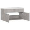 Cette armoire d'évier avec lavabo intégré s'agence parfaitement à votre salle de bain ou toilette avec un aspect saisissant et bien rangé. L'armoire est en bois d'ingénierie, ce qui la rend robuste et stable. L'armoire de rangement a 1 compartiment et 2 portes, offrant amplement d'espace pour ranger des objets. Elle s'intègre parfaitement sous l'évier et rend le rangement de la salle de bain très pratique. Fabriqué en céramique, le lavabo peut non seulement servir de récipient pour un usage quotidien, mais également d'ornement dans votre espace de vie. Grâce à son design avant-gardiste et contemporain, ce lavabo s'adaptera à n'importe quel décor. Un trop-plein est également équipé pour évacuer l'eau lorsqu'il est trop plein. Sa surface vitrée lui confère un design à la fois moderne et élégant. De plus, l'armoire et le lavabo sont faciles à nettoyer avec un chiffon humide. Remarque : le robinet et le vidange ne sont pas inclus dans la livraison. Les enfants doivent être surveillés pour s'assurer qu'ils ne jouent pas avec l'appareil.Tenez les enfants éloignés de la zone de montage. Attention : lisez attentivement les instructions avant l'utilisation et les conserver pour référence ultérieure.